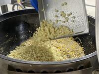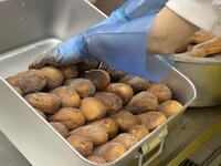 牛乳 ココア揚げパン ツナポテト 麦のリゾットスープ 今日の揚げパンは、ココア味。1年生にとっては初めての揚げパンでしたが、上手に食べることができたでしょうか。揚げパンは、パンが重なってしまうと油が染み出てべしゃっとしてしまうので、食缶に立てて並べていきます。ツナポテトは、ツナ・玉ねぎ・コーンを炒めた具材に、別に蒸したじゃがいもを加えて仕上げることで、ホクホクだけど型崩れが少なくなるように仕上げています。