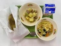 牛乳 抹茶きなこ揚げパン ウインナーポテト 洋風かきたまスープ