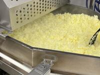 ごはんにホワイトソースは、バターと小麦粉をよく炒めてルウを作って、シチューよりもほんの少し固くなるように牛乳でのばします。
