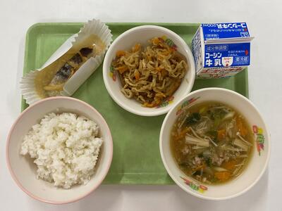 一覧へ 1. 今日の給食!10月4日(水) 投稿日時: 2023/10/04 情報担当 牛乳 ごはん 白身魚のみそマヨネーズ焼き 切干大根の煮物 じゃがいものそぼろ汁 今日から流山市産の新米を使い始めました。お米の味がわかるように白いごはんです。 主菜の魚は、「スケソウダラ」です。あっさりとした味の白身魚なので、しっかり味のみそマヨネーズソースをかけて焼きました。「切干大根の煮物」は、じっくりと煮含ませてごはんの進む味付けにしています。