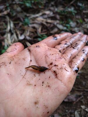 女子の中学生会員が、エビを傷つけないように自分の掌に乗せてみたものです。