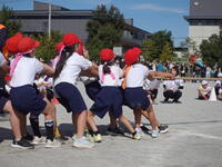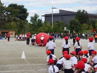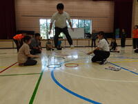 まずは、うさぎ跳びなどの運動で開脚跳びの体の動きの感覚をつかみます。