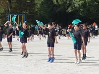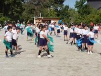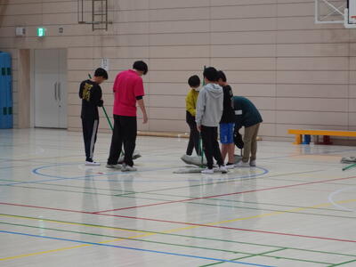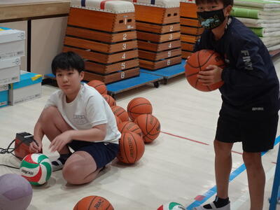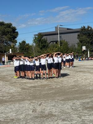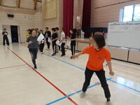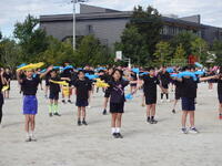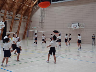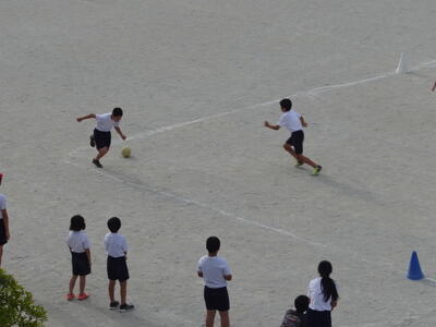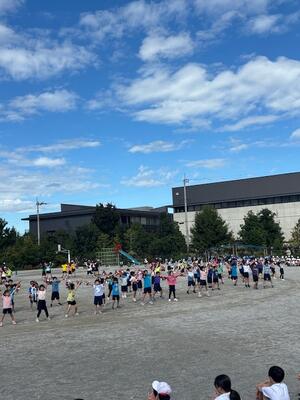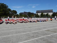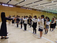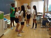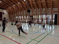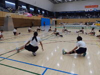 県主催の研修を受けてきた教師から、運動遊びや陸上運動について実際に体を動かしながら学びました。