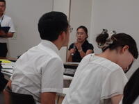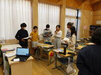 講師として流山市教育委員会指導課の指導主事、坂本真弓先生をお招きして、研究授業の振り返りを行いました。坂本先生には研究授業で毎回指導いただくと共に、夏には実技研修も行っていただきました。(我々もつくりだす喜びを味わいました。)