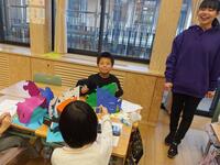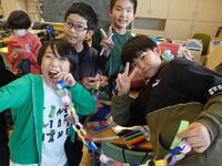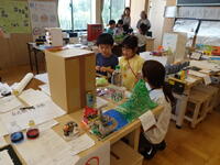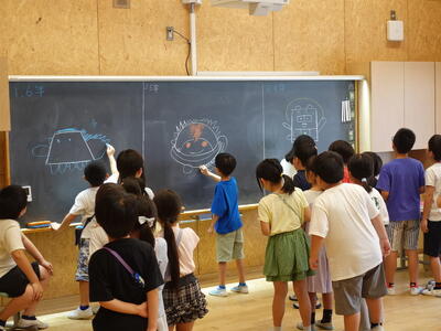 くろもり小ではつくりだす喜びを味わえる図工の授業づくりに全校で取り組んでいます。今日は2年生、3年生の研究授業を行いました。研究授業では児童がつくりだす喜びを味わうために、2つの手立てを設定しています。1つ目は、友人や身近な社会と「関わりをもてる工夫」を行うこと。2つ目は、「見通しをもてるような工夫」を授業に取り入れることです。