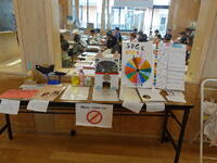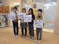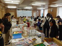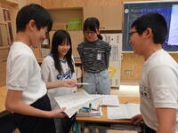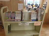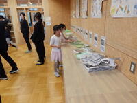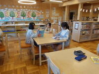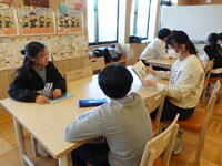 学校図書館ではブックトーククラブがグループごとにおすすめの本を紹介中でした。