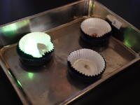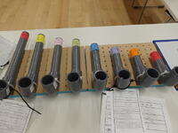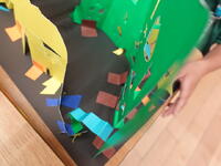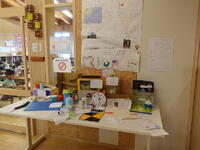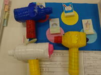水の量をいろいろ変えて絵の具をぬってみる、水の量コーナー 小さな画用紙でお試し!