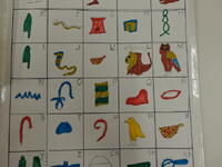 クレヨンの重ね塗りをしたものを爪楊枝で削ってみる。