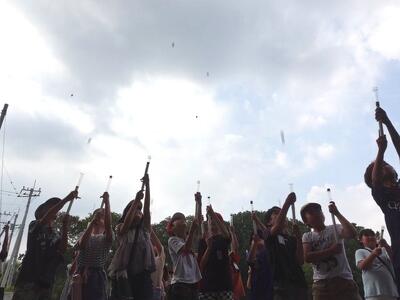 最後は校庭の中央に集まって吹き出し花火!歓声が沸き起こりました!