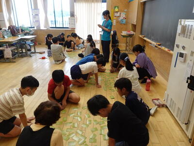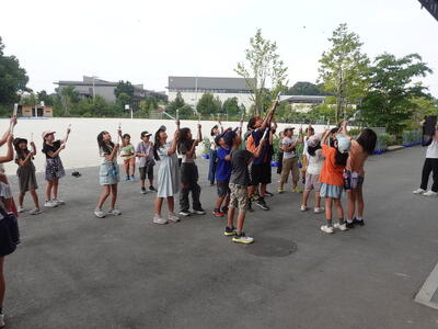 輪っかを置いてケンケンパをグループで行ったのですが、