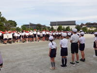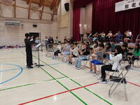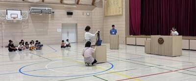 始業式の前に、全校児童に流山市の担当者の方から工事についての説明がありました。