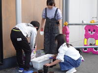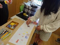 水でぬらした紙に絵の具をぬる、にじみコーナー