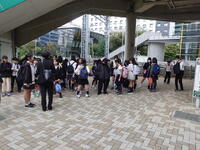 挑戦する早口言葉は、「東京特許許可局」(とうきょうとっきょきょかきょく)!!だれもが一度は挑戦しているのではないでしょうか。普段は何事もなく言えるこの言葉も、マイクを前に一発勝負!なかなか難しいものです。さすが名乗りを上げた挑戦者たち!がんばりました!!