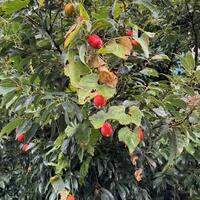 草を取り除くと、まだまだ小さな木なのに立派に実をつけていました。
