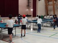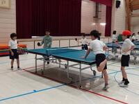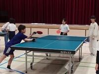 するどくスマッシュ!!卓球台に身を乗り出して!