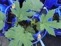 昨日は咲いていなかったオクラの花がいくつも咲いています。