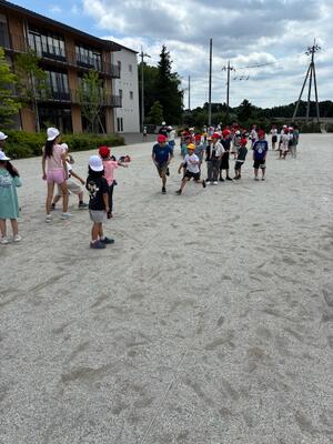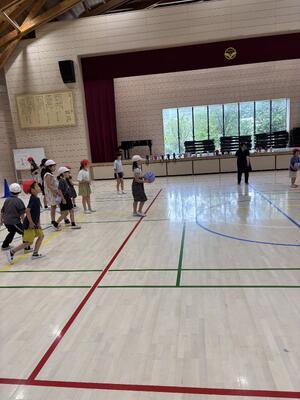 今回校庭や体育館で遊んだグループは、次回は教室で遊び、どのグループも1回は校庭で遊べるように計画しています。