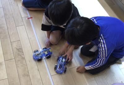 今年度も昨年度に続き,理科は専科の堀切先生にお世話になっています!空き教室で実験用の電気自動車を走らせる子どもたち!電池の数やカイロのつなぎ方によって走るスピードに違いが出ることを、遊びながら理解していきます!