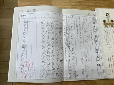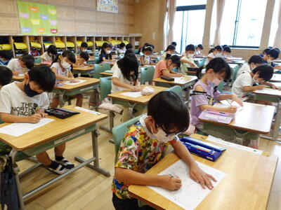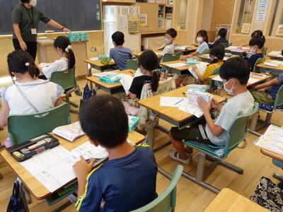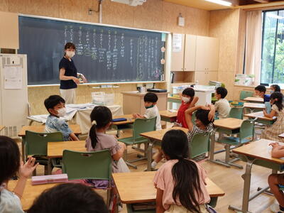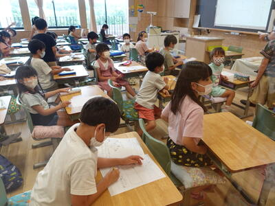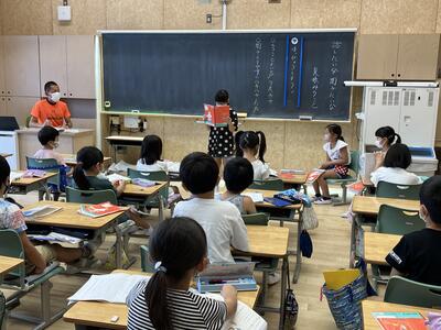 2年生の教室では、夏休みにあったできごとを発表する会が開かれています!夏休み中の主な出来事をいくつかピックアップして、その中からこれぞと思うものを選択し、組み立てメモをつくって発表します!友だちの前で緊張しますが、堂々と発表しようと頑張る姿が素敵です!