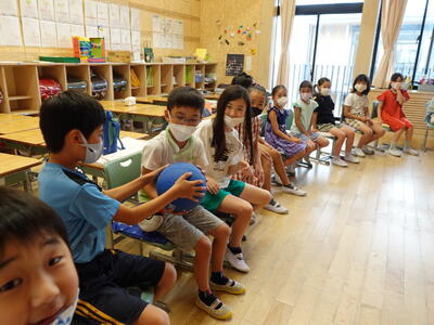 他学年の子たちを集めて、遊びを紹介しています!1学期に惜しくもできなかった分を取り戻さんとばかりに、一生懸命に説明する姿が素敵です!
