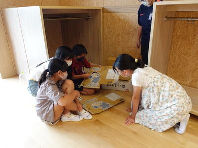 四角、三角、つなげる。子どもたちが工夫を凝らしながら楽しそうに取り組む様子が見られました。