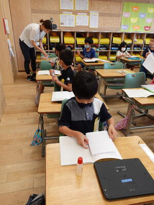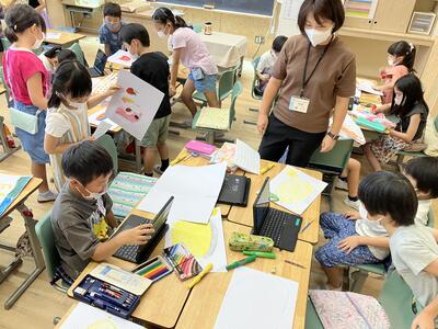 タブレットを使った活動の幅が少しずつ増えている1年生ですが、今日はカメラ機能を使った学習に取り組んでいます。