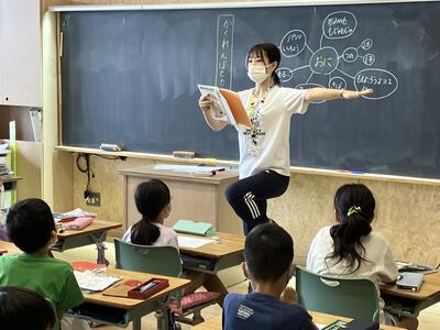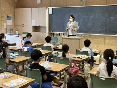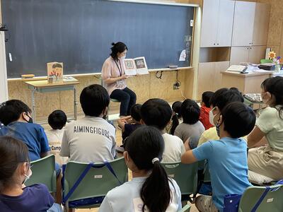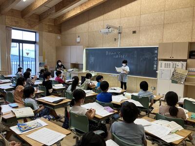 若手教員の真木が2年生の教室で読み語りをしています!読み聞かせと違うのは、先生の語りだけで子供たちに情景を想像させたり、物語をイメージさせたりしているところです!教科書で鬼が出てくるお話を学習したので、そこからひとりひとりの読書をさらに拡げていくために、鬼の出てくる話をしているようです!若手教員頑張っています!