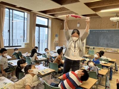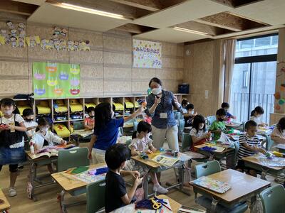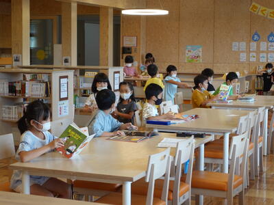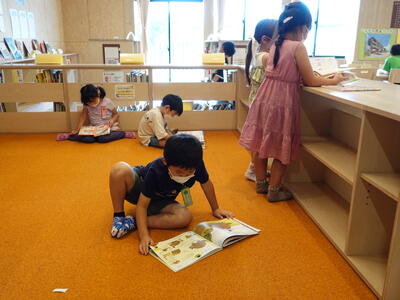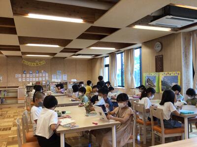 夏祭りが盛り上がっている隣の図書室を覗いてみると、読書好きの子どもたちが、夏祭りの賑わいなどどこ吹く風で、静かに読書を楽しんでいました!自分の興味関心で、自由に過ごせる休み時間をいつも確保してあげたいと考えています!
