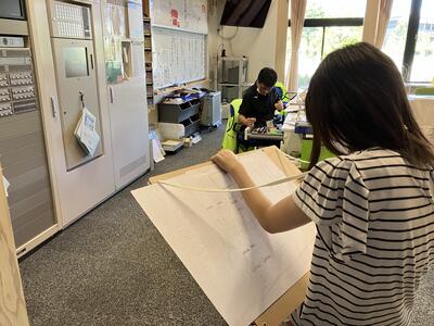 学校の掲示物を作ったり、剥がれそうな掲示物を修正したりしてくれています。