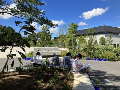 6年生が図画に取り組んでいます!職員室の防災放送機器に興味を持って、細かくスケッチする子!外でのんびり青空と雲を眺めながら、ほっとした時間を過ごす子など様々です。素敵な1枚が撮れました!