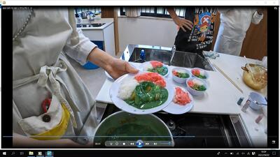5回にわたって、学校の給食ができるまでの動画が流れました。
