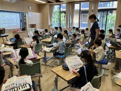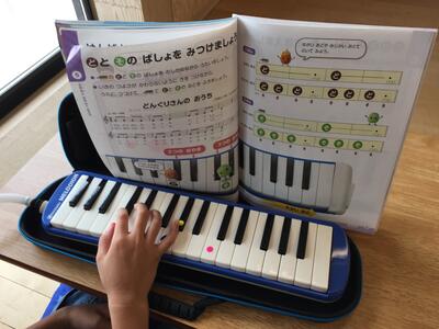 音楽の学習で、鍵盤ハーモニカを使い始めました。