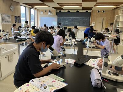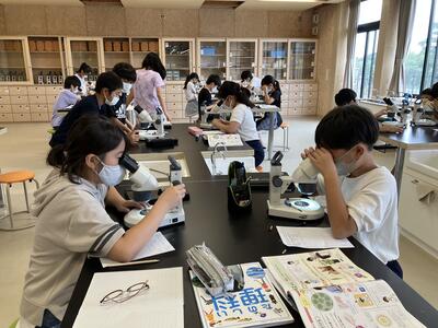 5年生が理科の授業をしています!本校にはひとり1台の双眼実体顕微鏡があります!両目で観察することができるので、見たいものが立体的に観察できるのですよ!ひとり1台ですから全員が自分の手を使い、試行錯誤しながら観察をしています。今日はアサガオの受粉について調べています!アサガオは不思議な花で、開花するときにおしべが伸びてめしべをら追い越して受粉するのです!そのため丁寧にアサガオを開いて観察すると、すでにめしべに受粉した状態が見られるはずです!みんなどうかな?