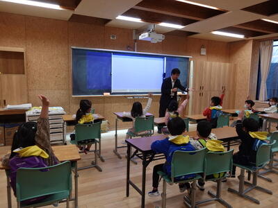 小学校について質問を聞くと、手がたくさん挙がりました。積極的!!