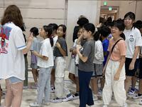 さて、一旦集合!キャストさんの説明はもちろん英語です!(通訳してくれながら進みます 笑)学年学級関係なく、お誕生月でまずは3チームに分かれました。チームになった後は、あれこれ説明する時間はほとんどなく、キャストさんが歌う歌、掛け声、身振り手振り、ダンスなど、全てのことを子どもたちはどんどん真似て吸収していきます!大人はどうしても理解してから動きたいので、「え?これどの部分?」「え?振りがわからない」とかドギマギしちゃうのですが、 子どもたちは、「なんだかわからないけど体動かしちゃえ!」「声出しちゃえ!」と進んでいきます!学校だよりにも書きましたが、この年齢でしかできない経験というものがあるのですよね。子どもたちが、大人になる頃はもっともっとグローバルな世の中になっていると思います。その時に、「ちゃんと理解しなければ動けない」のと、「なんだかわからないけどとりあえずやってみる!」の間には、その先に待っている世界が大きく違うのではないかと思います。本当に貴重なありがたい体験をさせていただいています。
