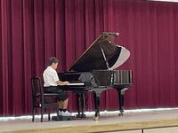 社会福祉協議会の石幡会長さんのご挨拶もあり、いよいよ小中学生の舞台の始まりです。最初はおおぐろの森中学校吹奏楽部の演奏です!迫力ある演奏に、会場の皆さんも惹きつけられています。本校の音楽部の児童も、真剣な眼差しで聴いています。次に、本校2年生のバイオリン演奏!1年生、4年生、5年生のピアノソロ演奏!フラダンスの披露がありました!練習の成果がたくさんの人に聴いてもらったり観てもらえてよかったですね!