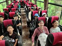 移動はバス!コロナの時期は、黙ってビデオを観ながらのバス移動となっていましたが、ようやく子どもらしく元気にいろいろなゲームをしたり歌を歌ったりしながらの楽しい校外学習のバス旅です!私は4年1組の児童と一緒のバスでした。1組のゲームは、誰が長く声を出していられるか?とか、全員に質問をしてたった一人が当てはまるものを質問した人が優勝!とか、子どもらしい色々なアイデアで、渋滞なんか全く気にならずわいわいとバスは進みました。面白いのは音楽を流してみんなで歌を歌うことを子どもたちが「ライブ」と呼んでいたことです!きけば子どもの考えたオリジナルのネーミングだということ!「みんなで歌を歌いましょう」とか「カラオケをします」ではなく、「ライブをやります!」という言葉の響きの強さと、センスに脱帽です!