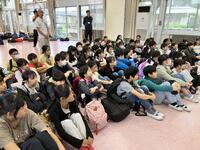 バスに乗り込む際は、荷物の積み込みをたくさん先生に手伝ってもらい、雨の中ですが6年生や先生方の温かな見送りにバスは出発しました。2組のバスはまず歌から。校歌やCOSMOSいい声です!さすが5年生!その後は「◯ん◯ん」の言葉を考えるという高尚なレクでたいそう盛り上がり、おおぐろ小の知性の高さを発揮したり、「さ」で始まり「い」で終わる七文字の言葉は?というクイズにみんなが悩んだ後、「さとうせんせい」という答えで、担任愛を感じたりしているうちに、あっという間に茨城中央青年の家に到着です!