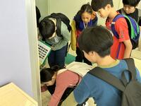 科学館では、言葉強めの館員さんの諸注意に、どうかと思うところもありましたが、子どもたちはまず、プラネタリウムで4年生用の学習プログラムで太陽や月の動き、今見える星座や北極星の見つけ方など天文の基礎知識を学びました。背もたれが大きく倒れるゆったりとした椅子に、一番喜んでいたのは引率の先生方かな?(気絶してませんよね?)その後は昼食です。螺旋状に小さなフロアがあるタワー型のユニークな食事スペースで、お家の人に感謝のお弁当タイム!まだまだ、お家の人の作ってくれたおかずやキャラ弁、デザートを自慢したいお年頃!子どもらしくていいなあ!