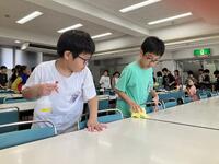 インドアビンゴを終えた後も、ちょっと時間があったので、ミニレクをすることになりました!まず、伝言ゲームが始まりました!6,7人の縦のチームをつくって、先頭から文章を回します!お題として出されたのは、なんと林間学園のめあてでした!ということは、通常の伝言ゲームと違い、それを全員が覚えてさえいれば、簡単に後ろまで正確に伝わるはず・・・ですが、まあ結果はご想像通りでありまして・・・がんばれ5年生!