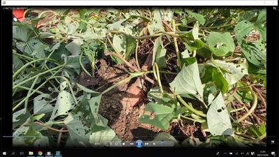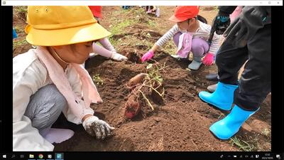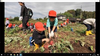 青空の中、汗をいっぱいかきながら、さつまいも掘りを頑張りました。