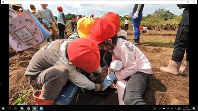 5人集まって協力して、さつまいもをぬいているグループもありました。