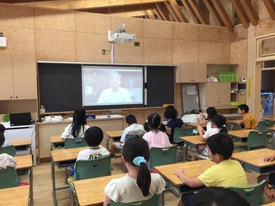 選手の皆さんの練習風景が流れ、各教室からは「おぉ~!」「すごい!」といった歓声が聞こえてきました。