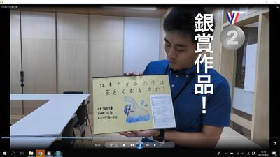 夏休みの課題で、学校の代表として選ばれた科学工夫工作・論文の紹介がありました!