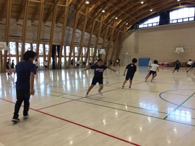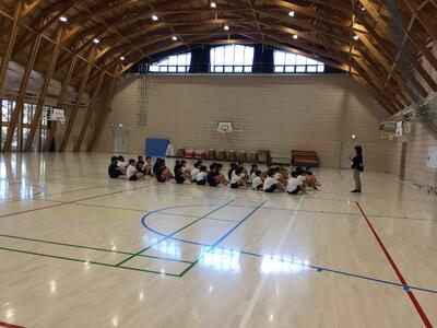 運動に親しみ、バスケットボールを楽しむだけでなく、あいさつや礼儀・使うものを大切にすることなど、運動部として活動していく上で大切なことを話した後、練習に入っていきました。