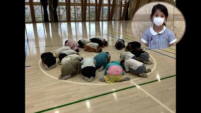 体育館で1年生が新聞紙をさまざまに工夫して楽しく運動していました!舞い上げたものをくぐったり、背中に乗せたり、足でタッチしたり、道にして友達を進めたりと、ひとり一枚の新聞紙でこんな色々な運動ができるなんて、まさに目から鱗です!