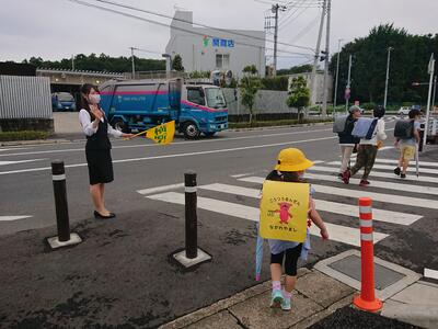 保護者・地域の方には、動画でも配信しましたが、9月から地域トヨタのスタッフさんに、旗振り当番を担っていただくことになりました