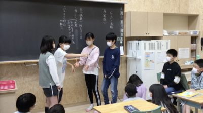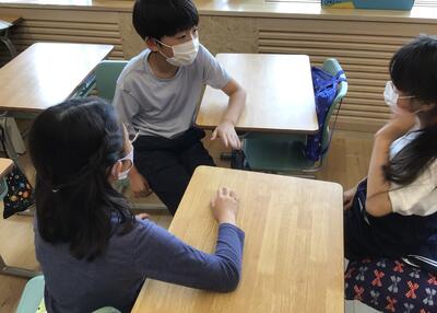 4年生では先週から、「話し方」に気をつけて発表するようにしています。特に発表時には話の終わりに注目し「シェア言葉」を使うようにしています。「シェア言葉」とは、「他に意見ありますか?」や「私の意見に共感する人はいますか?」などの自分の考えから他の人の考え方に繋げ、学びを広げる言葉です。まだ使い慣れていないため、少々苦戦している様子も見られましたが、少しずつシェア言葉を使うことが習慣化し、学級会では児童のみで議論をし、考えを深めることができました。今後も話し方や伝え方の指導を大切にし、児童の主体的な学びにつなげていきたいと思います。