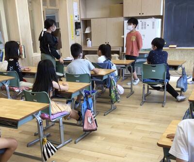 今日は、生活委員会から教室内でも遊べるレクの紹介と、飯山先生の夏休みの思い出紹介がありました。