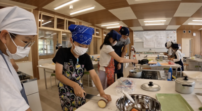 5回にわたって、学校の給食ができるまでの動画が流れました。